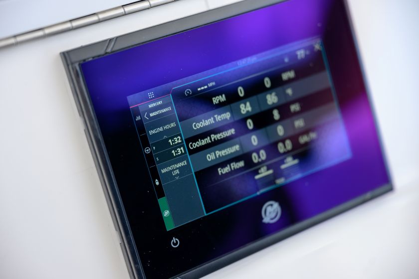 Powered by twin Mercury 300 V8 Verado outboards with only 10 hours and factory warranty through August 2029. Equipped with Mercury Joystick Control with Auto Pilot for precise, effortless handling.