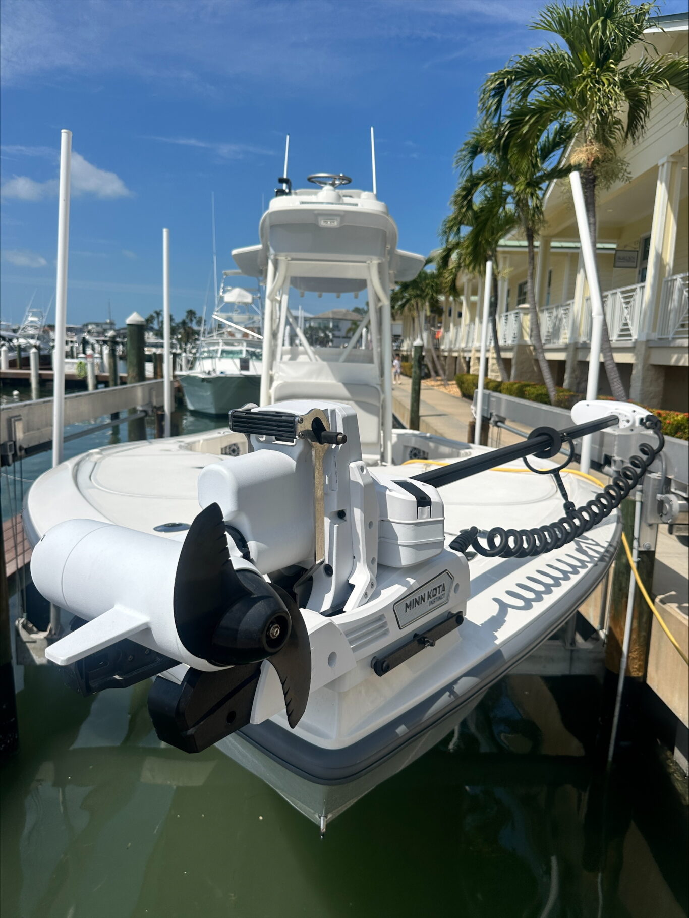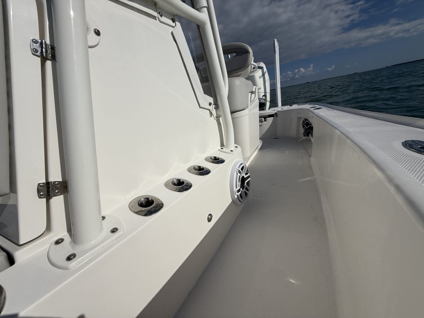 Low Profile 2nd Station, Dual 10′ Power Poles, Auto Deployable trolling motor w/36v Lithium Battery, U/W lights. 2 livewells with custom 3 pump seachest, Fresh water/Salt water wash down, Simrad twin 12″ MFD’s, Structure Scan, Simrad Dome radar, JL Audio sound System,