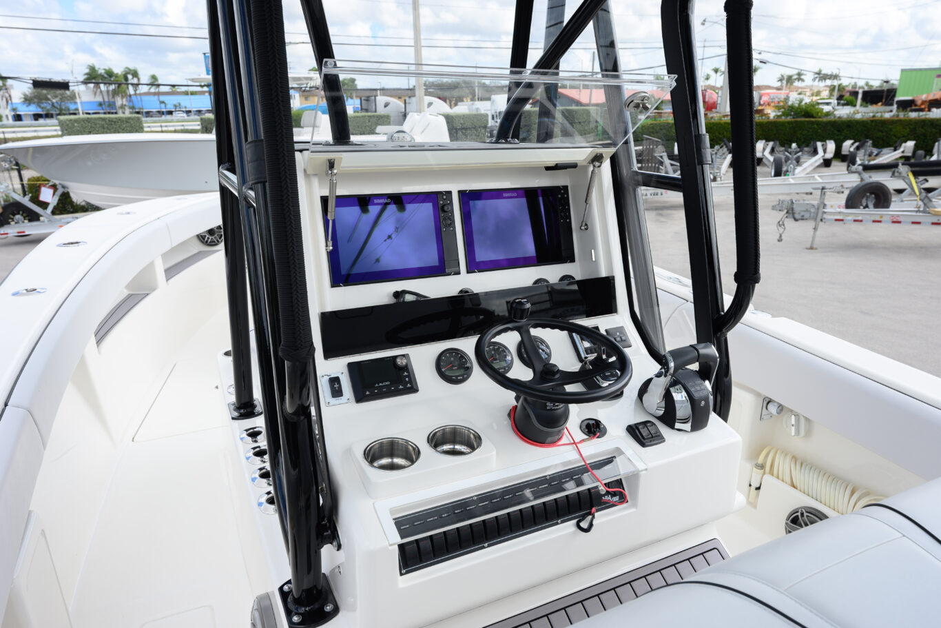 Fiberglass Molded Key West with Low Profile 2nd Station Tower includes 6 rod holders/aft and Fwd LED spreader lights/4 Multicolored LED lights