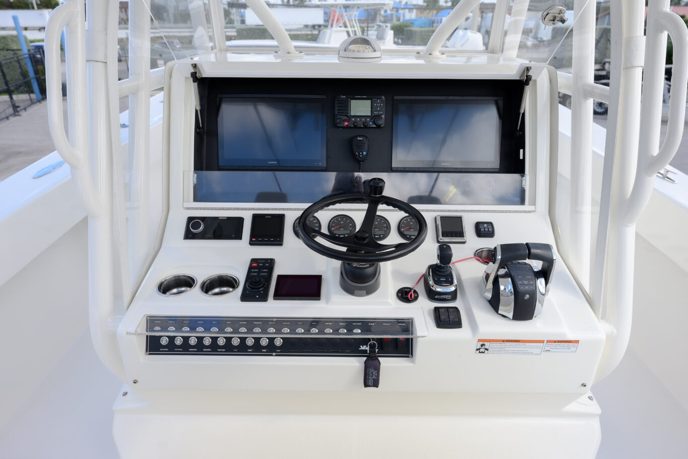 2 Garmin 8616, Garmin Grid, Garmin 424 X HD@ Open Array radar, Garmin 275LHW Chirp Transducer, Garmin Autopilot plus Optimus Autopilot, Icom 506 VHF Radio