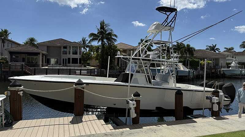 3-Sided Polycarbonate Console Enclosure, Custom Side Dive Door w/Ladder, Fresh Water 90 Gallon Custom Tank Washdown & Shower, Gemlux Bluewater Outrigger Bases w/22′ Lees Carbon Fiber Poles, Fiberglass Helm/Tackle Station w/Deep Storage, Slide Out Frigid Rigid Cooler & Seat Cushion, Transom Livewell + 2-Floor Wells + Frw Floor Livewell + 2-Above Deck Hook Ups Powered by 2-3-Pump Seachests, 18-Console Rod Holders, 43 -Gunnel Rod Holders + 2-Swivel & 7-Electric Reel Outlets, Under Gunnel Lighting Blue, 7 AGM31 Batteries w/Onboard Charger & 30amp Shore Power Hookup, Electronics: Full Raymarine Pkg: 12″ GPS In Tower, 2-16″ GPS Hydro Touch @ Helm w/12KW Open Ray Radar + Auto Pilot Full JL Audio Sound System, Donny 5617224261