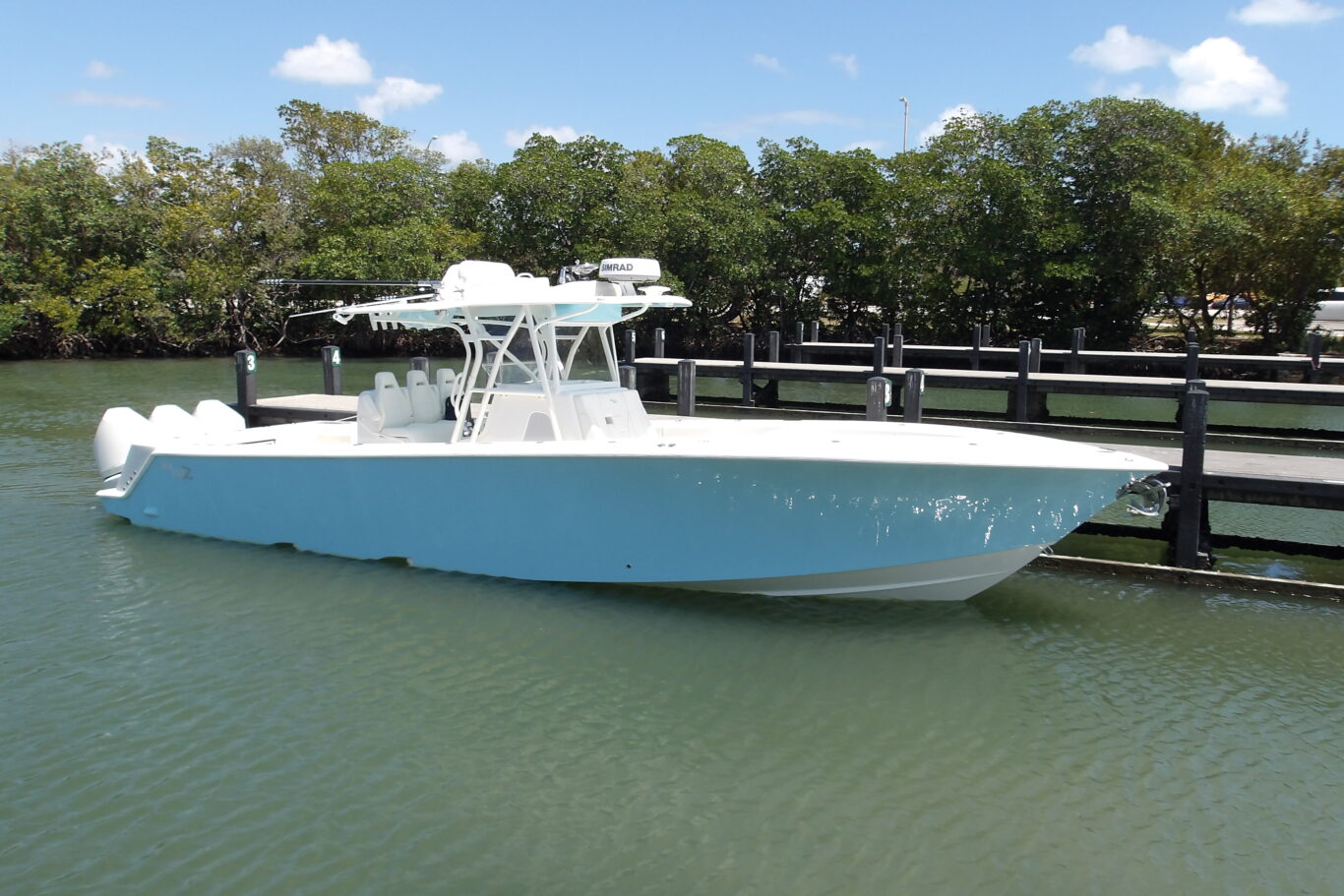 Fiberglass Molded Key West Hard top with a Low-profile 2nd station tower with Mercury controls and helm