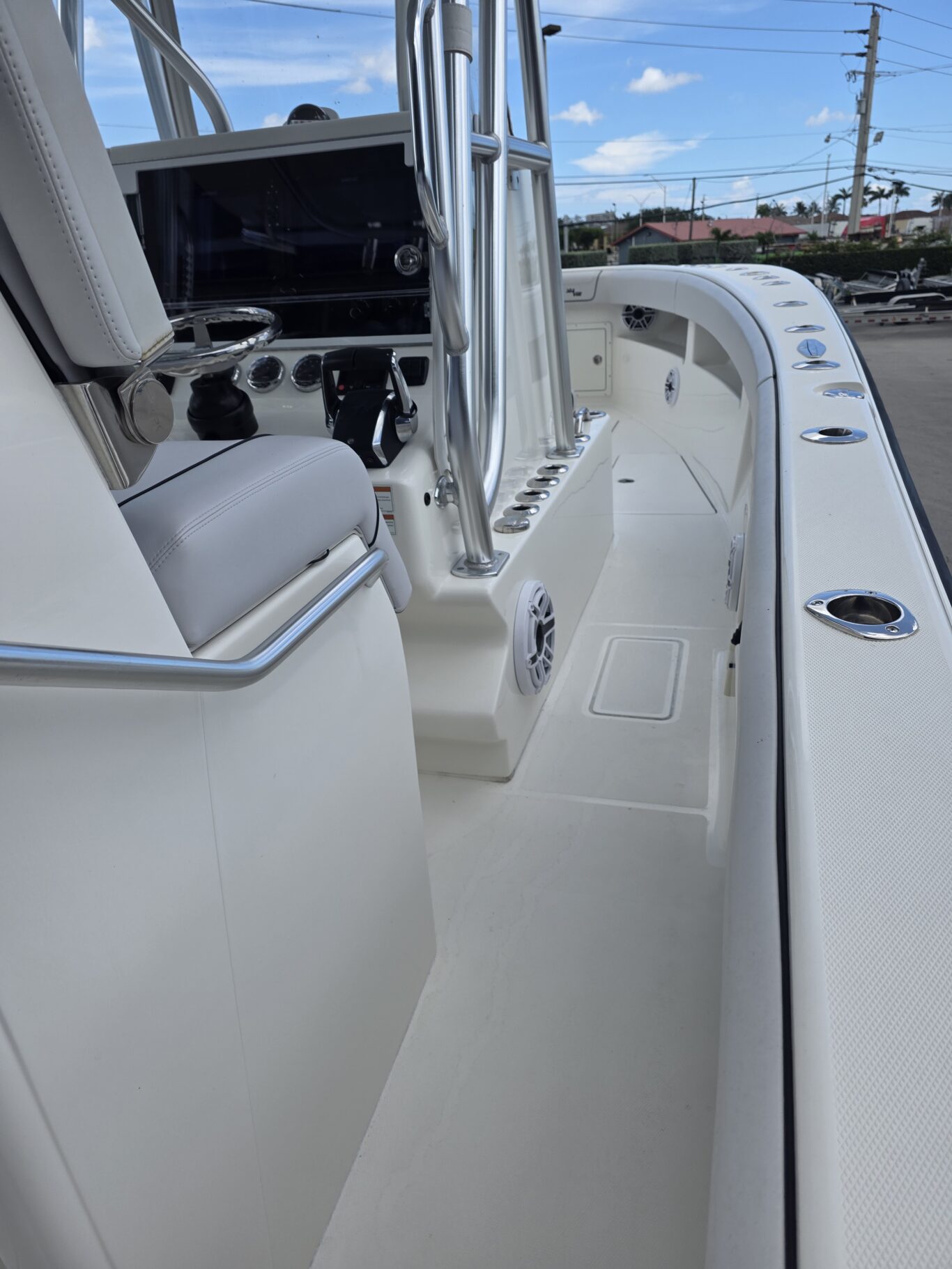 Fiberglass Key West Hard Top, Whisper Gray underside color, King fish Rod Holders, add welded grab handles