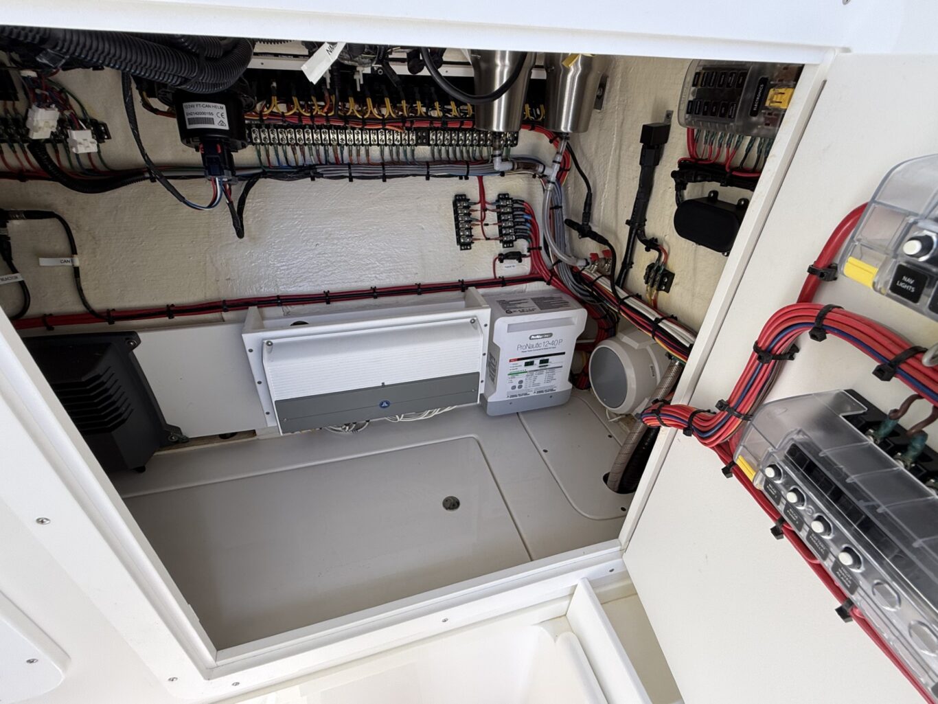 - 2 16″ Garmin MFDs, open array radar, autopilot, GSD 26 with CHIRP transducer