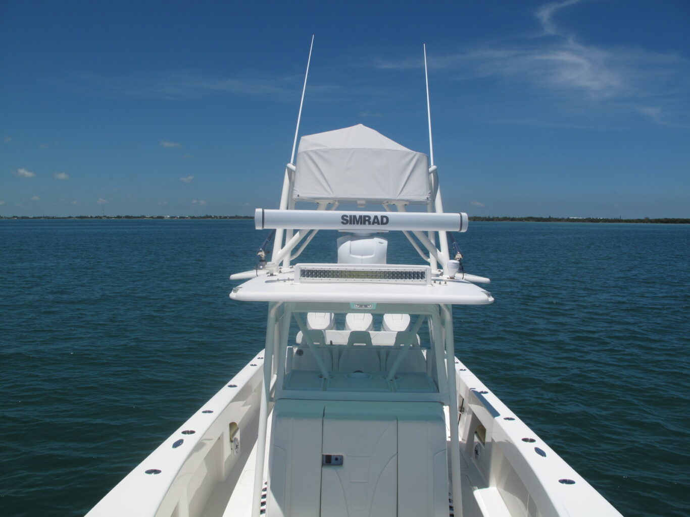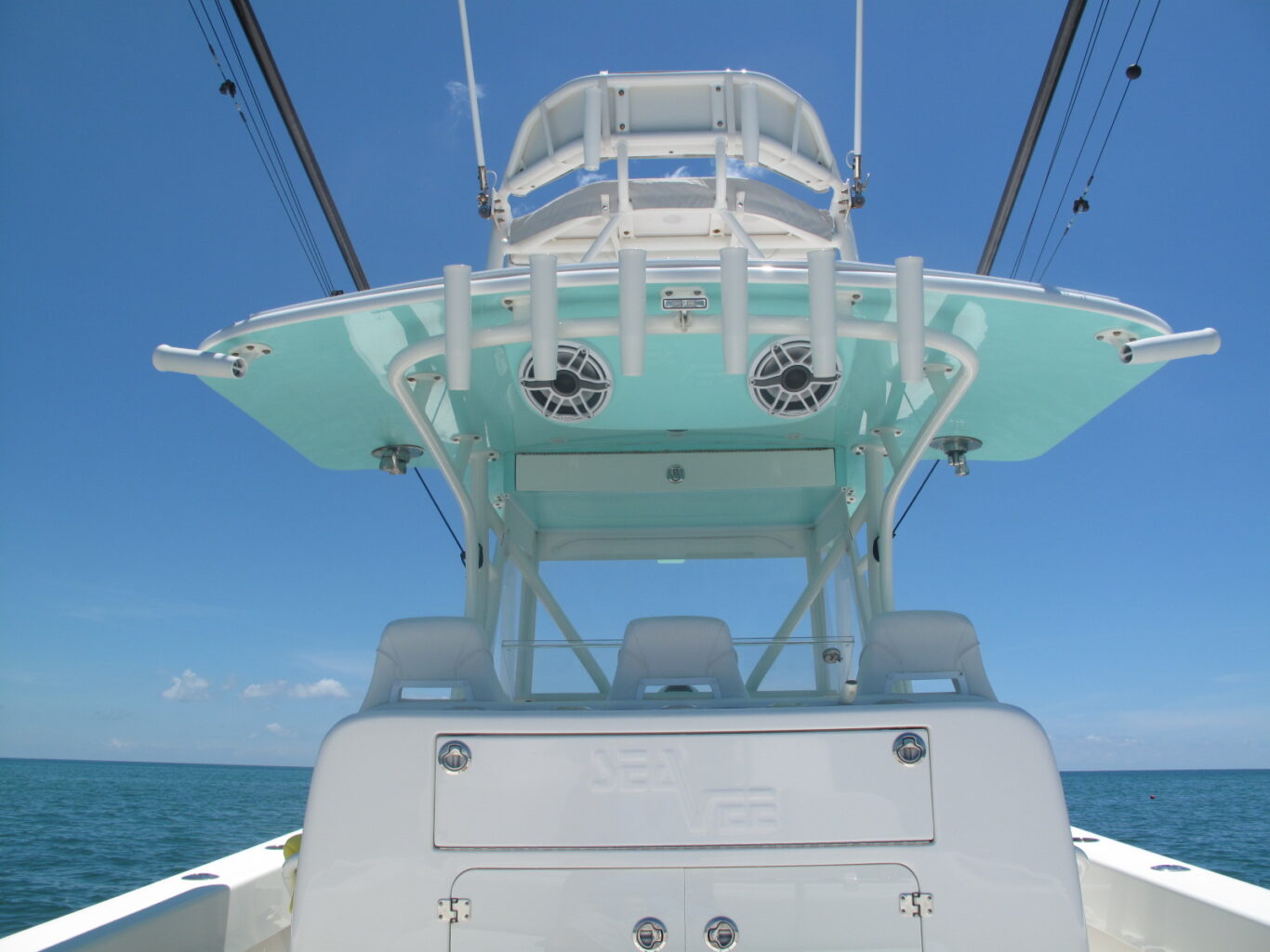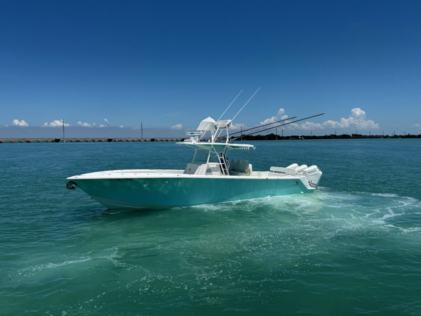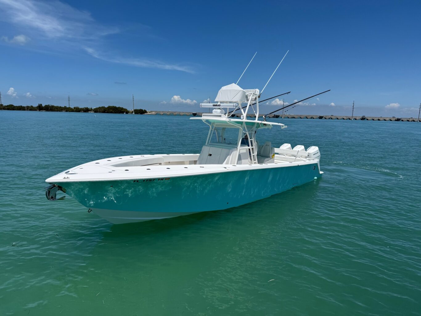 Trip Mercury New V10-400s Only 68hrs & Warranty Thru 8/21/2028, Bow Thruster, Custom Hull Color Seafoam Green + Underside of Hard Top, Fiberglass KW Style Hard Top W/T-Tower & Full Controls + Simrad EVO3S-9″ GPS, W/White Powder Coated Pipe Work + Gemlux Outrigger Holders w/18′ White Carbon Fiber Poles, Fiberglass Custom Kite Box Under Hard Top, Kingfish Rod Holders (2), Push Button Switch Panel, 3-Sided Polycarbonate Console Enclosure, Mercury K Plane Tabs, Seakeeper 3, Auto Anchor Windlass, Hull Side Dive Door + Transom Ladder, Rigid Marine 30″ Light Bar w/Fiberglass Housing, Oversize Fiberglass Helm/Tackle Station w/Triple Seat Backs & Armrests, + Side Doors 1-With Tackle Drawers & Aft Fixed Frigid Rigid Cooler + Seat, Aft Bench Seat w/Backrest + Fiberglass Coffin Box w/Elec Lift, Fresh & Raw Water Washdowns, 2-Transom Livewells + Frw Floor Well & w/4-Pump Seachest, 12-Console Rod Holders, 22-Gunnel Rod Holders + 4-Swivel & 6-Elec Reel Outlets + 6-Gunnel Drink Holders, Under Gunnel Lighting + 2-Underwater Lights RGBW, 4-AGM31 Batteries + 30amp Shore Power w/Onboard Charger, Bahama Aft Shade, Electronics: Carbon Fiber Wrapped Dash w/Simrad Twin EVO3S-16″ GPS/Plotters S5100 Sounder Module for CM599LH Chirp Transducer 2-3 KW Glassed into Keel, Halo 3004 Open Ray Radar, AP44 Auto-Pilot, Sat Ant, GS25 Active Antenna, Icom 510 VHF w/External Speaker, Fusion MS-RA770 Stereo, JL Audio Speakers & Amps 2-7.7″ + 4-8.8″ + Fiberglass Molded Speaker Pod w/2-8.8″ + 2-10″ Subs all Powered by 2-Amps = 1,400 Watts of Power,