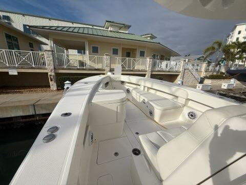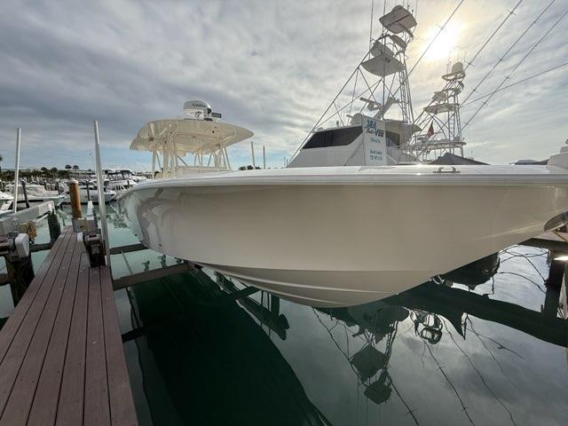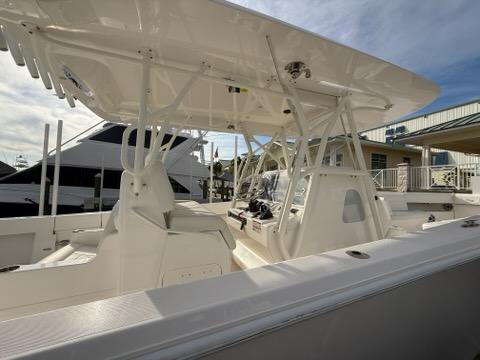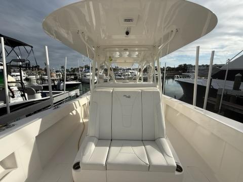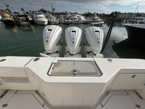 triple engine 30amp battery charger, Fresh and saltwater washdown, dive door, Pneumatic console door, automatic engine flush, Electric head with holding tank and macerator pump out, EZ anchor puller Rebel 5 w/600′ of spectra anchor rode,Rhodan 108′ Trolling motor with 36V Lithium ion battery, electric reel outlets, Gemlux bluewater bases w/18′ carbon fiber poles, L shaped removable lounge seats, forward seating, rear facing seat with cooler, Underwater lights, dual sea chest system for livewell,