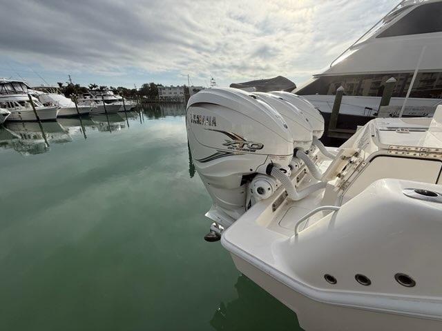 Triple 425 Yamaha’s with 151 hours and warranty until 2031. Boat is very clean and has been stored inside by a knowledgeable owner. XTO Helm Master EX full Maneuverability kit. Yamaha DES to Auto Pilot upgrade.